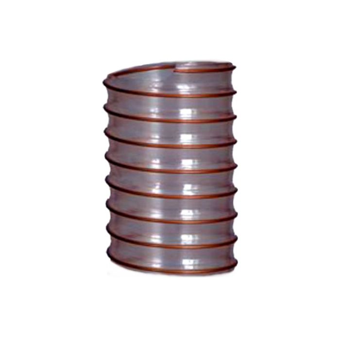 Flexibler Schlauch aus abriebfestem Polyester-PU mit eingegossener Federstahlspirale.